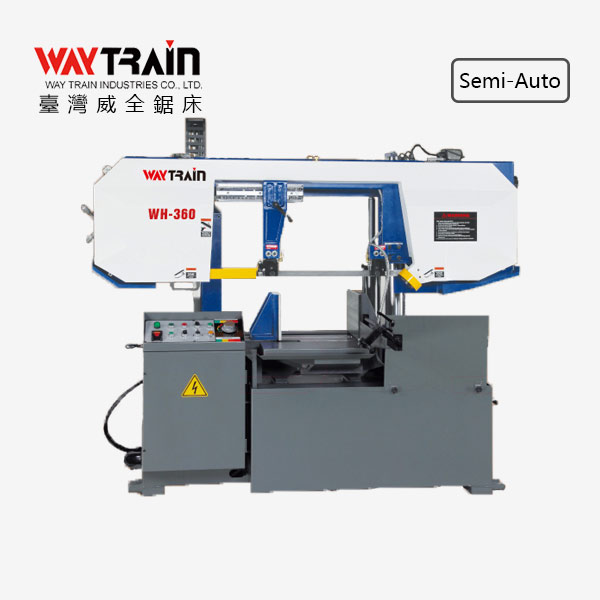 • WH-360A 雙柱式半自動(dòng)帶鋸機(jī) 半自動(dòng)系列 手動(dòng)式鋸帶無段變速調(diào)整 數(shù)位鋸帶速度顯示表 排齒式油壓虎鉗夾緊裝置 油壓鋸帶張力 工作燈